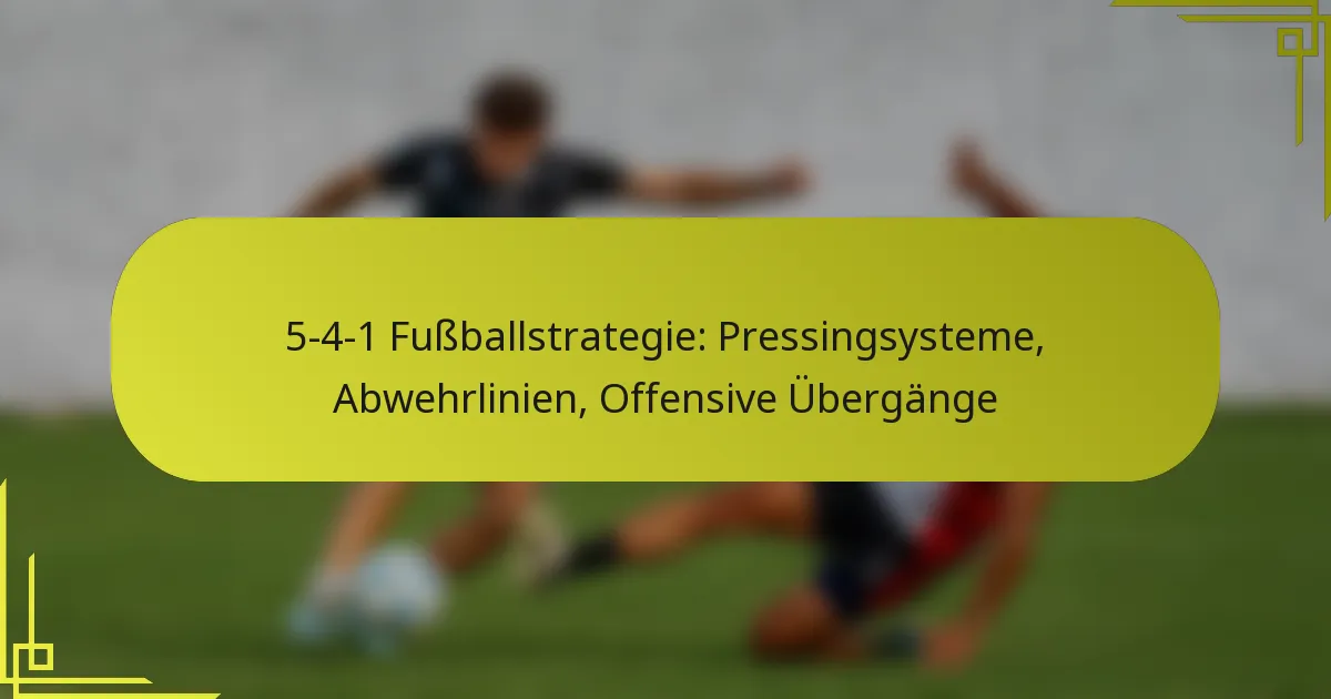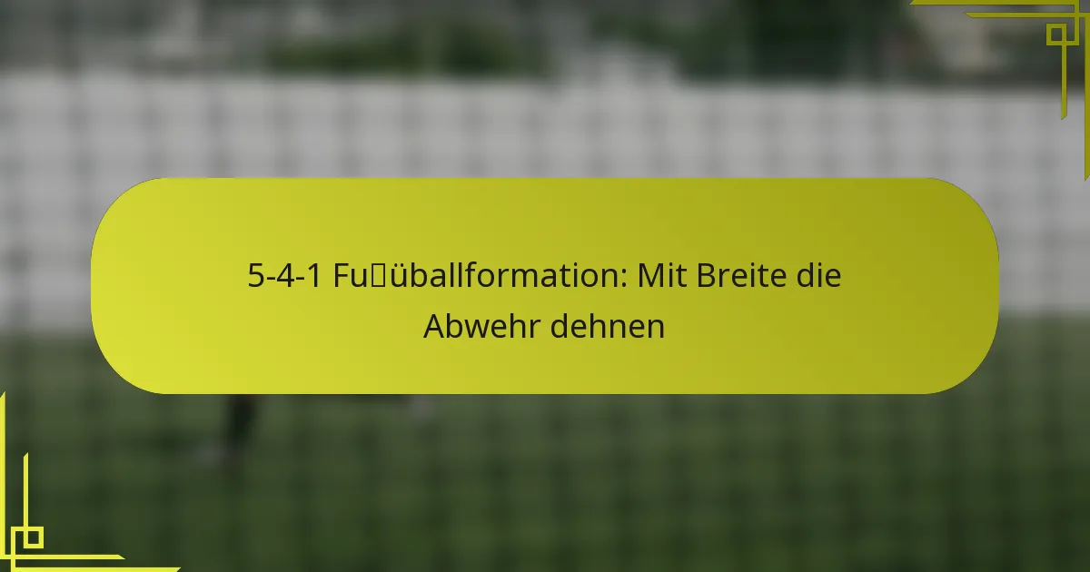 Die 5-4-1 Fußballformation ist ein strategisches defensives Layout, das eine solide Abwehr mit fünf Verteidigern betont, ergänzt durch vier Mittelfeldspieler und einen einzigen Stürmer. Dieses Setup stärkt nicht nur die Verteidigung, sondern ermöglicht auch schnelle Konterangriffe. Wichtige Elemente wie Abstände, Positionierung und Spielerbewegung sind entscheidend, um die defensive Integrität aufrechtzuerhalten und nahtlose Übergänge zum Offensivspiel zu ermöglichen.