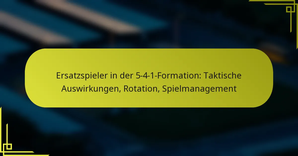 Wechselspieler in der 5-4-1-Formation spielen eine entscheidende Rolle bei der Gestaltung des taktischen Geschehens eines Spiels und beeinflussen sowohl die Defensive als auch den Angriff. Durch strategische Auswechslungen können Trainer die Ermüdung der Spieler managen, die Teamchemie verbessern und sich an die sich entwickelnden Dynamiken des Spiels anpassen, mit dem letztendlichen Ziel, ein günstiges Ergebnis zu sichern.